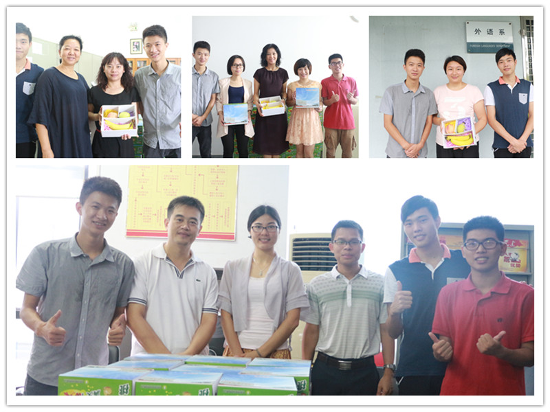 9月10日,在这个特殊的节日里,当东莞理工学院安静的校园响起第一节课上课钟声的时候,一辆满载包装精美的水果礼品盒的汽车穿梭于校园间,给老师们送上节日的祝福。精心设计的礼品盒里,一个桃子,一个梨子(寓意桃李满天下)作为两个眼睛,再加上两根香蕉构成了一张笑脸,包含着希望老师们工作、生活开心美好的寓意。