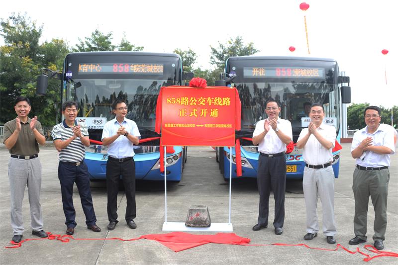 9月10日,858路公交车线路开通仪式在我校松山湖校区举行。我校副校长杨敏林,东莞巴士有限公司总经理李俊锋、运营部负责人周杰,我校学生处、资产后勤管理处、保卫处相关负责人和学生代表等参加了开通仪式。该项目是我校2016年民生实事之一。