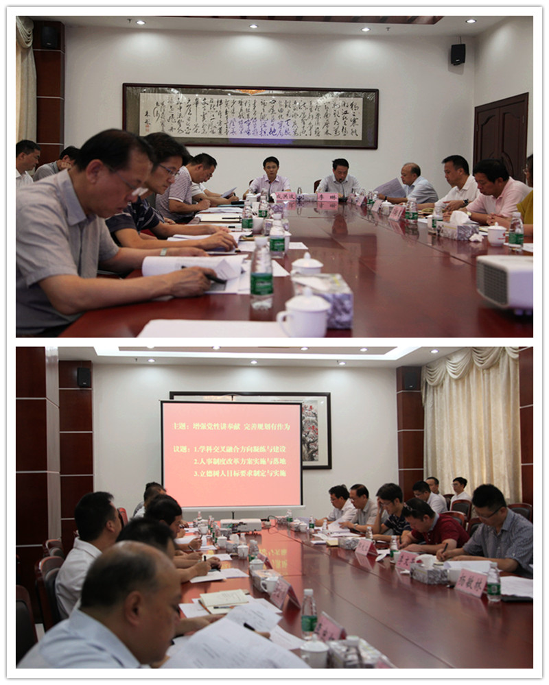 学校领导班子成员带头围绕“学科交叉融合方向凝练与建设”“人事制度改革方案完善与落地”“立德树人目标要求制定与实施”三个议题,结合自己学党章党规和习近平总书记系列讲话的体会,畅谈在高水平理工科大学建设中如何奉献和作为。研讨会上,大家展开了两场头脑风暴式的讨论。与会人员在思维的互相碰撞中不断喷射出新火花,思想得到进一步解放,提出了许多破除改革发展难题、实现弯道超车的新点子、新想法。
