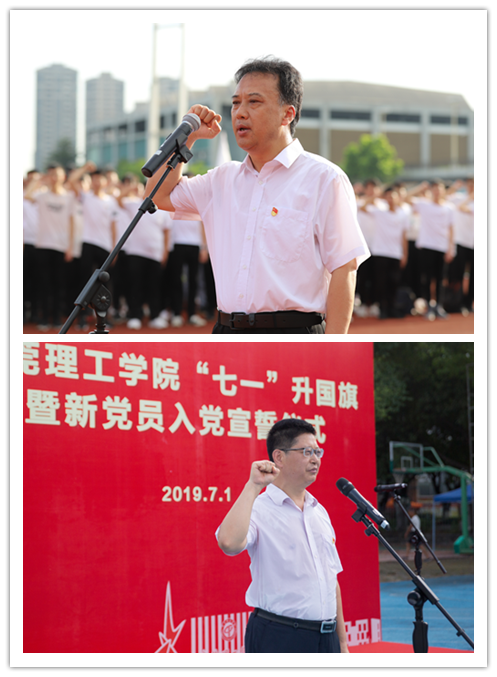 7月1日是中国共产党的98岁生日,上午7:30,学校两校区隆重举行“七一”升国旗暨新党员入党宣誓仪式。迎着金色的阳光,国旗护卫队踏着铿锵有力的正步走到升旗台前。国旗在国歌奏响中缓缓升起,新党员在国旗下宣读入党誓词,老党员重温入党誓词,誓以更饱满的热情投身于社会主义的建设中。学校党委书记成洪波,党委副书记、校长马宏伟,党委副书记吕琦元,副校长李忠红、杨敏林、李文芳,360名新党员,师生代表等参加了活动。