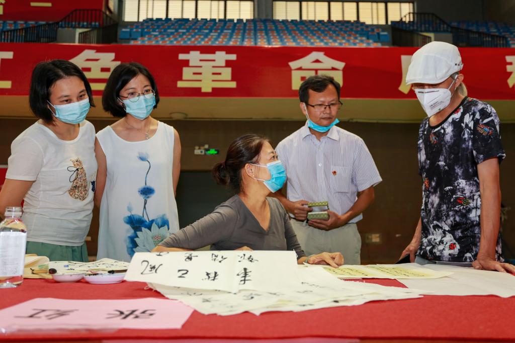 革命烈士家书、红色经典诗词、红船水墨画……6月17日,伴随着高雅的音乐,省、市书画家与校内师生共百人同场创作百幅书画作品,献礼建党百年。
