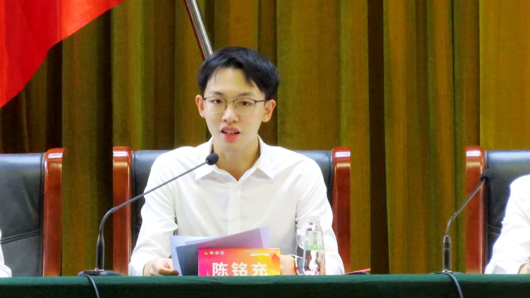 广东省学生联合会执行主席、东莞市学生联合会主席陈铭充在致辞中充分肯定了我校学生会组织在深化改革、服务同学等方面取得的积极成效。他希望各级学生会组织始终坚持党的领导,深化理论武装,服务发展大局,牢记服务宗旨,团结带领广大同学在中国式现代化建设的广东实践中挺膺担当。