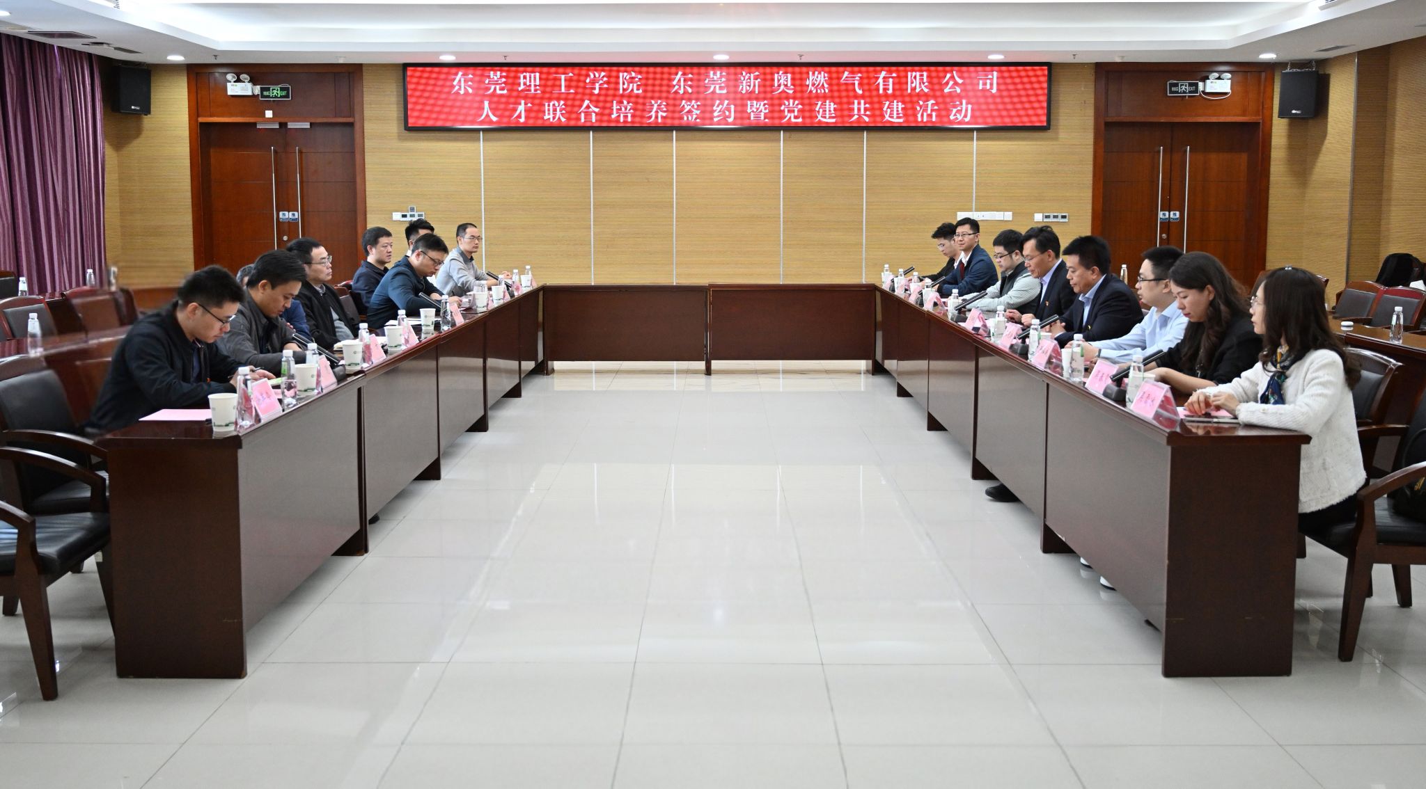 11月20日,东莞理工学院与东莞新奥燃气有限公司人才联合培养签约暨党建共建活动在学术会议中心举行。东莞新奥燃气有限公司总经理王伟晓、党委书记谷天新,我校党委委员、副校长徐勇军,教务部部长王红成,化学工程与能源技术学院党政领导班子等出席活动。