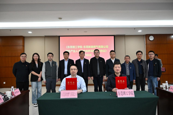 在与会嘉宾的见证下,双方签署了《特色产业人才联合培养项目合作协议》《中共东莞理工学院化学工程与能源技术学院委员会与中共东莞新奥燃气有限公司委员会结对共建协议》。根据协议,双方将围绕能源与动力工程、新能源科学与工程等专业,共建人才联合培养体系,并通过党建共建,为合作提供坚实的政治和组织保障,形成“业务合作+党建引领”双轮驱动的新格局。
