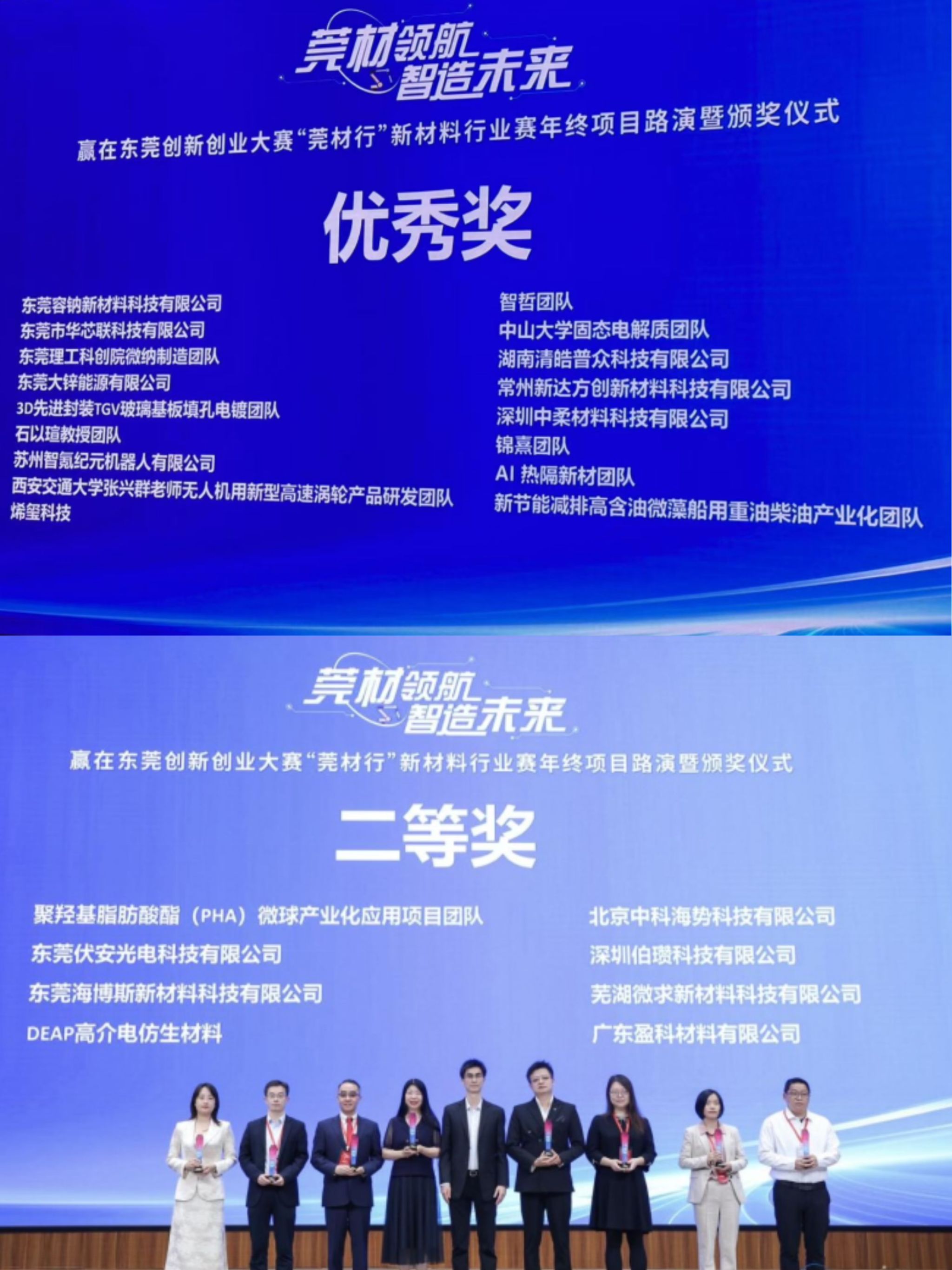近日,赢在东莞创新创业大赛 “莞材行” 新材料行业赛圆满落幕,东莞理工科技创新研究院(以下简称 “科创院”)孵化项目在赛事中斩获佳绩,获得1项二等奖和3项优秀奖。