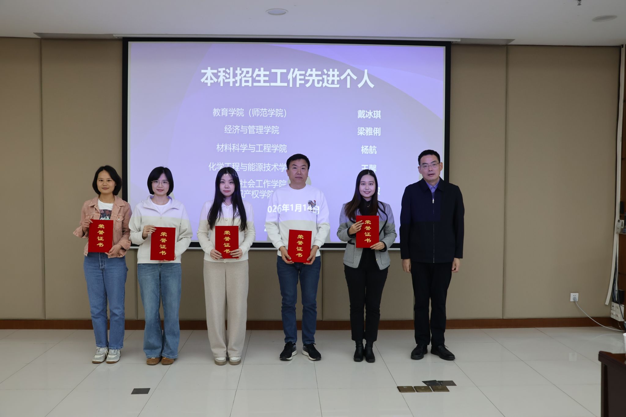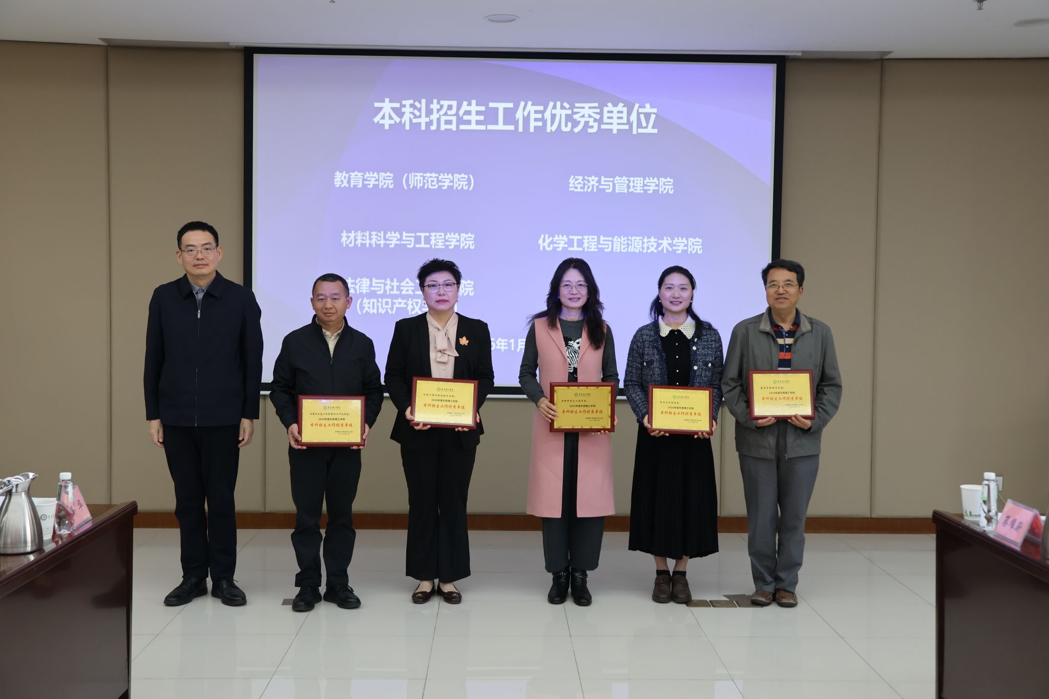 会议还对2025年招生宣传工作表现突出的5个优秀单位和5名先进个人进行了表彰。徐勇军为获奖单位代表及先进个人颁发荣誉证书,向他们的辛勤付出表示感谢。