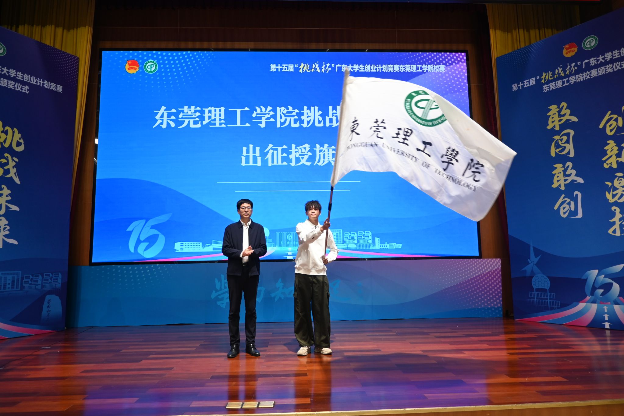 校党委委员、副校长胡钦华为即将出征“挑战杯”省赛的团队代表授旗并作总结讲话。他回顾了过去一年学校在构建创新创业教育体系方面取得的进展成果,并对莞工师生提出了三点希望:一是永葆“爱国奋斗、实业报国”的初心;二是锤炼“追求卓越、知行合一”的硬核本领;三是涵养“扎根东莞、融入湾区”的格局和视野。