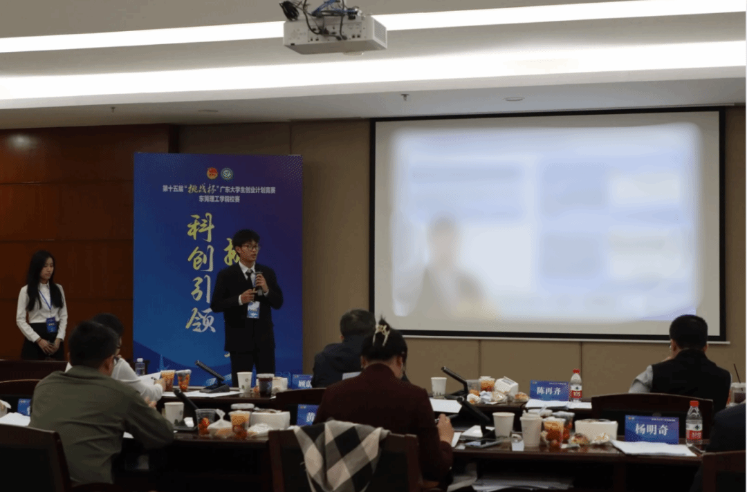 比赛现场,各参赛团队通过项目展示和现场答辩,细致阐述了项目的商业逻辑、技术优势与市场前景,充分展现了莞工学子的专业素养与创新能力。评审专家从参赛作品的科学性、可行性、现实意义及团队表现等多个维度进行综合评定,并提出针对性的问题和专业性的意见。