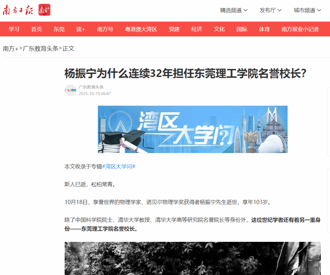做到全国“唯一”,为何是东莞理工学院?而杨振宁与这所地方院校的情缘,又何以“唯一”?