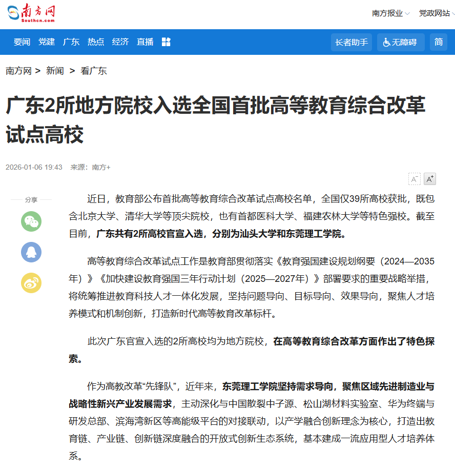此次广东官宣入选的2所高校均为地方院校,在高等教育综合改革方面作出了特色探索。