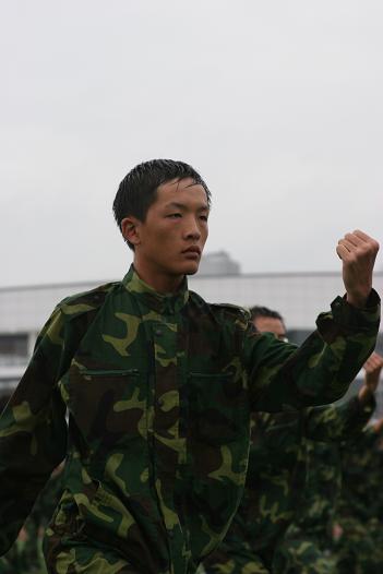 2005年新生军训汇报表演暨开学典礼昨天早上在雨中进行。市委副书记、学院临时党委书记刘树基,学院临时党委副书记、院长杨晓西,全国政协常委、中国科学院院士、我院兼职教授蔡睿贤,中国科学院士、我院双聘院士徐建中教授等领导冒雨检阅了新生军训成果,并出席开学典礼。