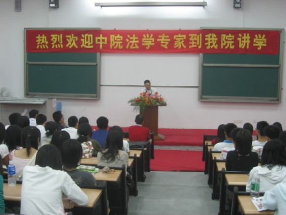 本次讲学由潘荣新老师主持,潘老师对东莞市中级人民法院李红辉副庭长一行的到来表示热烈欢迎。随后,李副庭长为师生们作了一场精彩而又不失幽默的法学讲座。李副庭长围绕着“怎样学习法律”这一主题,从理解法律、认识法律等方面出发,联系学生身边的真人真事,给同学们上了一节生动的法律课。李副庭长还向同学们讲述了学习法律的秘诀,即学好法理学基础,此外还要多从网络、报刊上的案例中学习,不要功利性地去学习法律,同时还要将法律知识联系实际,了解每一条法律背后的意义。07级法学专业的学生都兴致勃勃地听取了李副庭长的讲座。