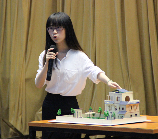 比赛过程中,各组组长介绍本组作品并接受评委和观众提问。其中,有男有女队ver.2016队的比赛作品“10”的模型尤为突出,该队设计的是高低错落的绿色现代别墅,融合了岭南建筑的特色结构和完整的通风系统,响应新时代绿色建筑的新理念。各组作品展示完毕后,进行了建模心得分享环节。参赛者向观众们分享了作品制作过程中发生的趣事和个人心得体会。评委老师根据初步印象、作品建造、创意理念及选手讲解等方面进行评分,共评出一等奖一名,二等奖两名,三等奖三名,优秀奖三名,最佳人气奖1名。