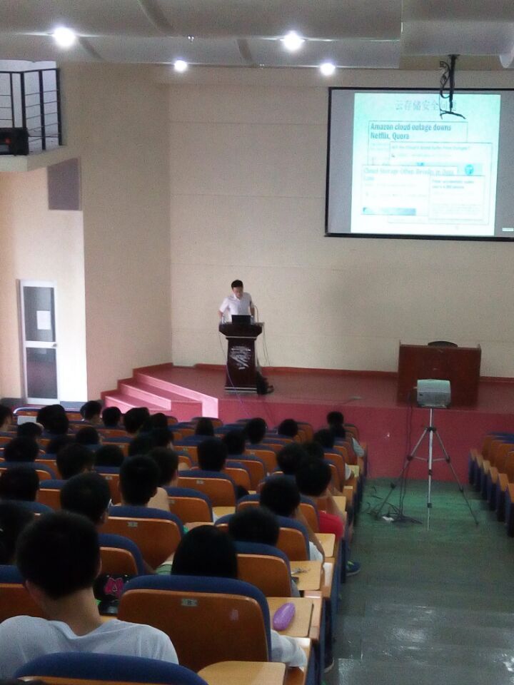 目前,随着云计算技术的发展和应用的普及,越来越多的用户数据外包存储在公有云平台,这对如何在云计算环境下实现用户数据的安全存储及高效检索带来了新的挑战。此次讲座重点介绍了云计算环境下相关的数据加密技术、存储方法及检索算法。现场师生就现有数据加密技术中公钥和密钥的安全存储问题,云计算环境下图像检索相关的同态算法以及加密数据检索的效率等问题与李进教授展开了激烈的讨论,最后,本次学术讲座在师生们的热烈掌声中圆满结束。