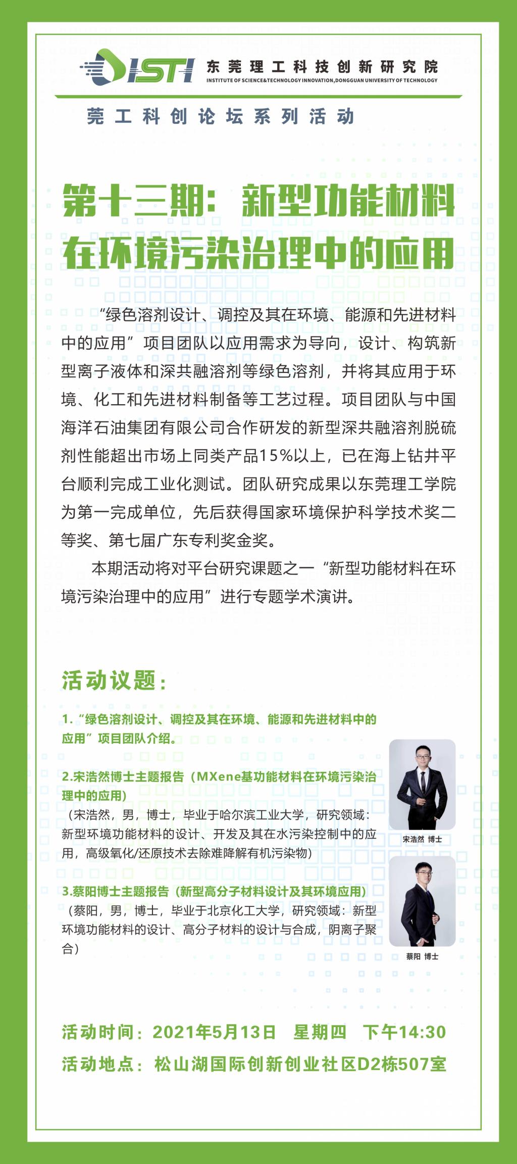 莞工科创论坛|第十三期:新型功能材料在环境污染治理中的应用