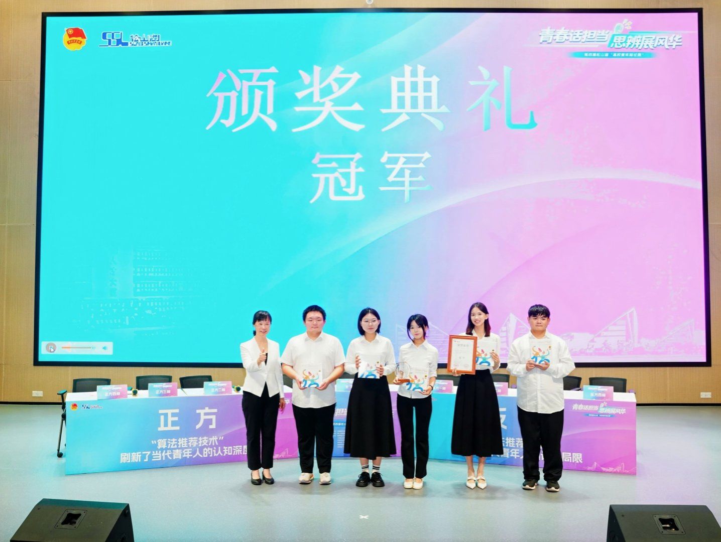 决赛场上,围绕“‘算法推荐技术’刷新了当代青年人的认知深度”这一紧扣时代脉搏的辩题,我校作为正方,从算法推荐的“信息筛选效率”与“认知边界拓展”切入,结合青年学习、科研中的实际案例,层层推进,论证了技术对认知深度的推动作用。面对反方的有力质询,我校辩手沉着应对,引经据典,以清晰的逻辑和流畅的表达赢得了评委的认可与现场观众的掌声。最终,经评委团从逻辑架构、论据支撑、语言表达等多维度综合评定,我校辩论队凭借更胜一筹的团队协作与观点说服力锁定胜局。