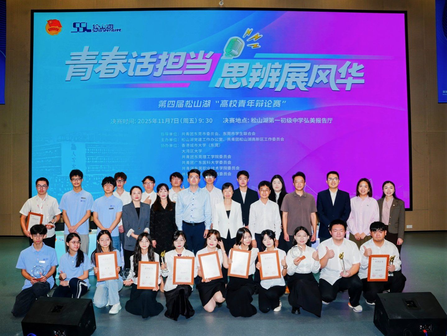 近日,第四届松山湖高校青年辩论赛决赛在松山湖第一初级中学圆满落幕。我校辩论队凭借出色的思辨能力、稳定的临场发挥和默契的团队协作,在激烈角逐中成功卫冕,连续第二年夺得该项赛事冠军,充分展现了我校青年学子的卓越风采与昂扬斗志。