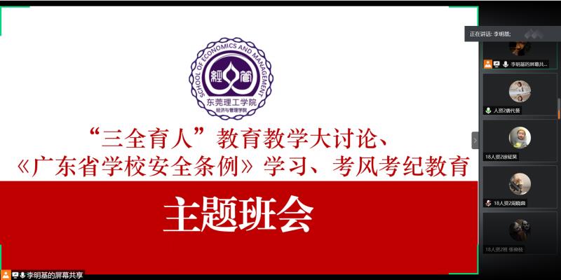 为贯彻落实全国高校思想政治工作会议和全国教育大会精神,加强经济与管理学院考风考纪建设与学生安全教育,学院各班级于6月22日至28日陆续在线上召开主题班会。
