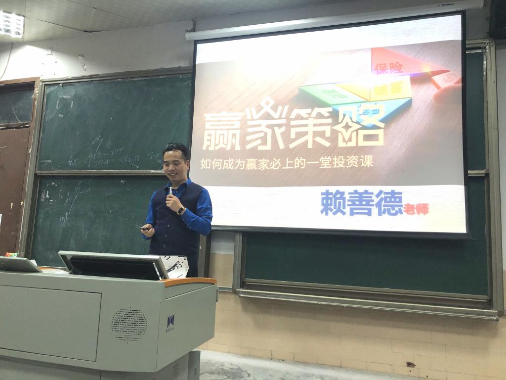 为推进 “三全育人”综合改革工作,加强一流学科、专业建设,经管学院积极引进行业精英入校开讲,创新课堂教学模式。3月15日,经管学院专业分享会在莞城校区进行,本次分享会的主讲人为国家CHFP一级理财规划师、永达保经高级经理赖善德。