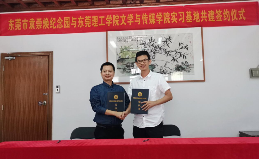 11月13日,文学与传媒学院赴东莞市袁崇焕纪念园座谈并签订校外教学实习基地共建协议。出席活动的有东莞市袁崇焕纪念园副馆长刘建辉,文学与传媒学院党委书记阎江等。